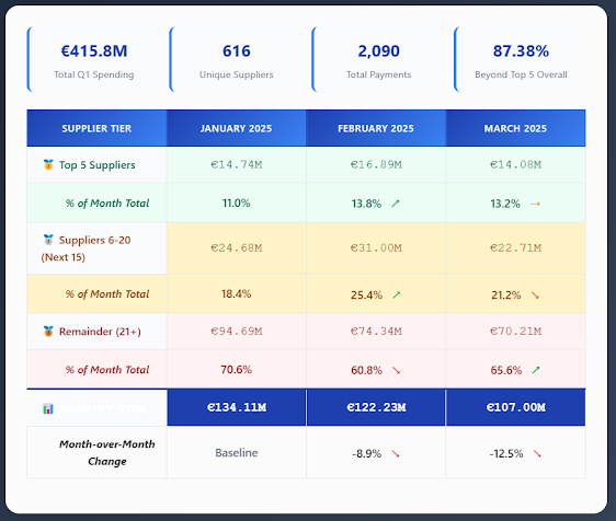 I conducted analysis of the approx 2000 payments using Anthropic Claude AI - there are three presentations one for each of Jan, Feb,Mar together with some commentary.