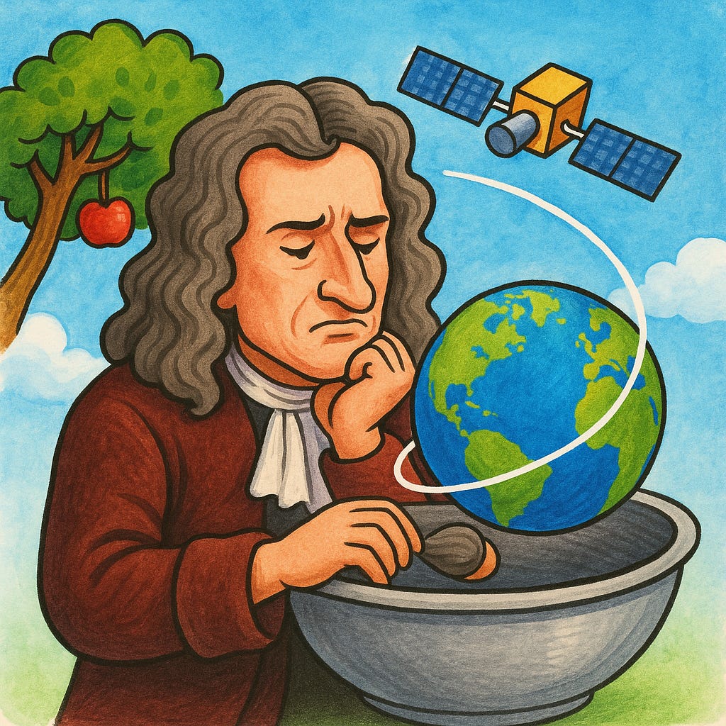 Imagine firing a cannonball from a mountaintop. Shoot it slowly, it arcs down and hits the ground nearby. Fire it faster, it travels farther before landing. But here's Newton's genius insight: shoot it fast enough - about 17,500 mph - and something magical happens. The cannonball still falls toward Earth, but Earth's surface curves away at the same rate. The cannonball is falling around the planet.